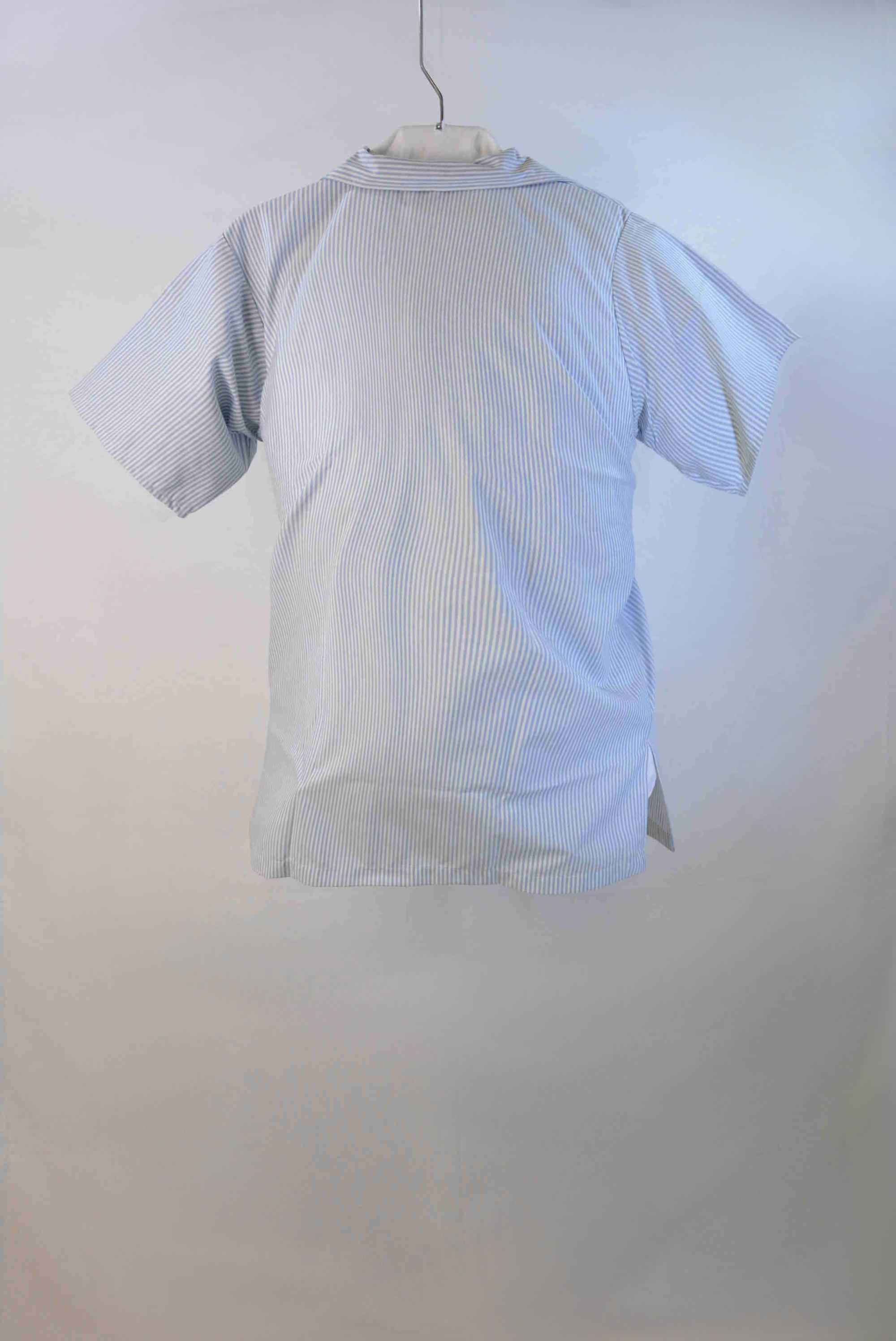 Der Kasack für Sie & Ihn ist in der Farbe blau/weiß und besteht aus einem Mischgewebe von 65% Polyester und 35% Baumwolle. Eine hohe Strapazierfähigkeit und das robuste Gewebe versprechen einen optimalen Arbeitsschutz. Der gestreifte Schlupfkasack hat einen Reverskragen und kurze Ärmel. Seitenschlitze sorgen für mehr Bewegungsfreiheit. Zwei geräumige Brusttaschen bieten Platz für Utensilien. Das Gewebe des Schlupfkasacks ist pflegeleicht und kann bei bis zu 60° Grad gewaschen werden. Anwendungsbeispiele: Als Kasack für Reinigungskräfte, Spülkräfte in der Küche oder Pflegekräfte.